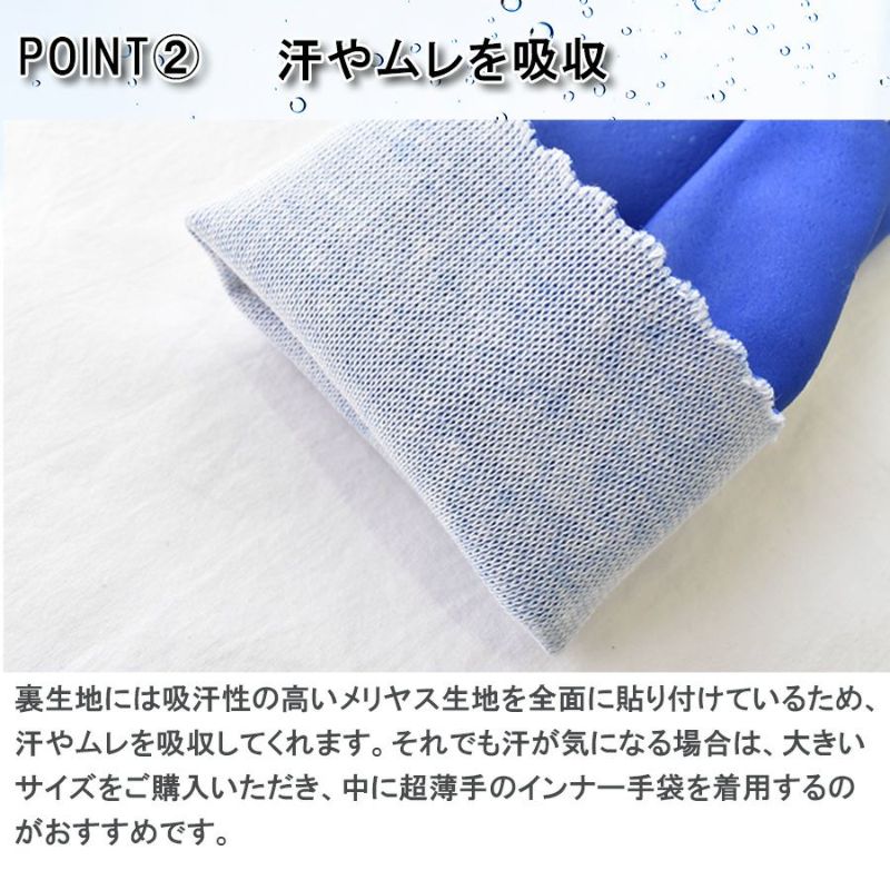それでも汗が気になる場合は、大きいサイズをご購入いただき、中に超薄手のインナー手袋を着用するのがおすすめです。