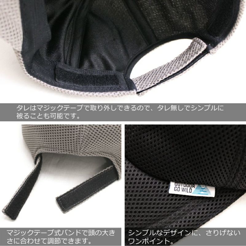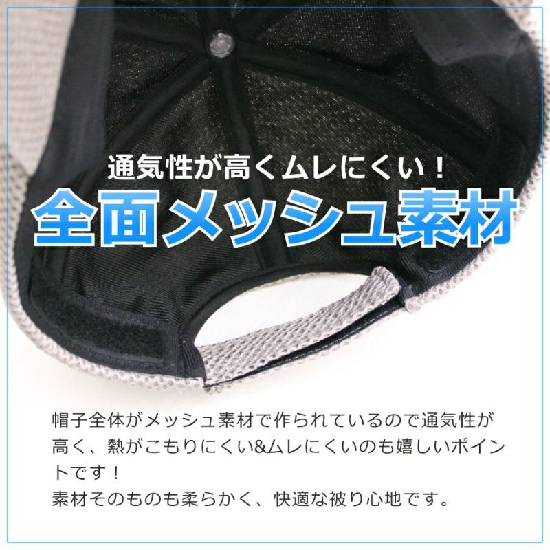 タレや本体を濡らして被ることで気化熱を利用し、ひんやり涼しく。 外部からの熱を遮る遮熱、通気性の高い総メッシュでより涼しく快適に。