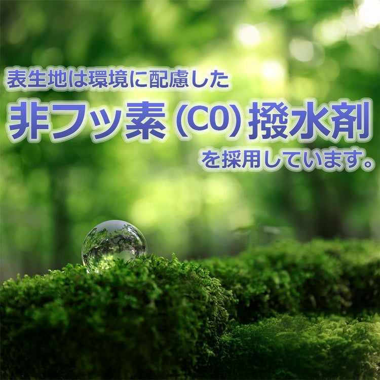 表生地は環境に配慮した非フッ素(C0)撥水剤を採用しています。