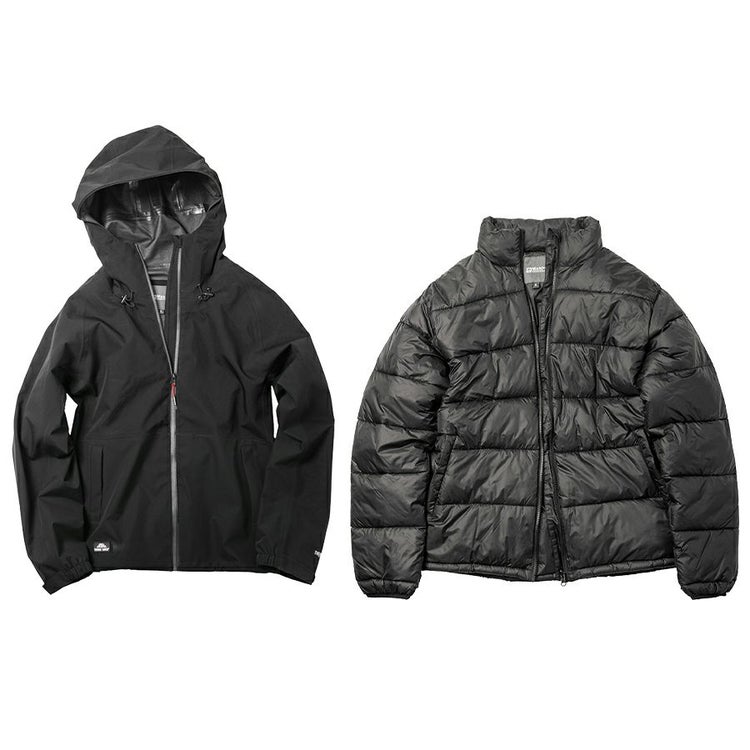 【1:透湿防水アウター + 2:防寒アウターの2着セット。】
