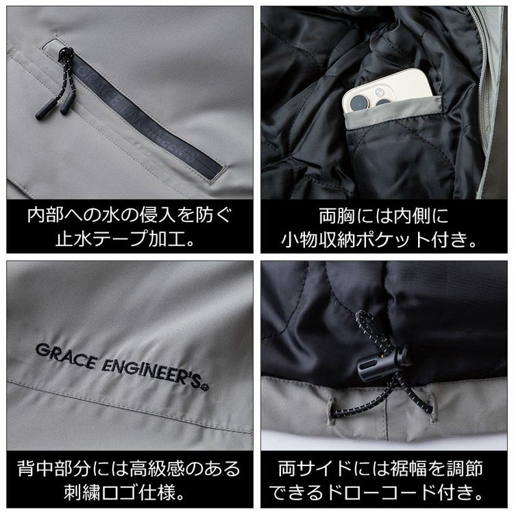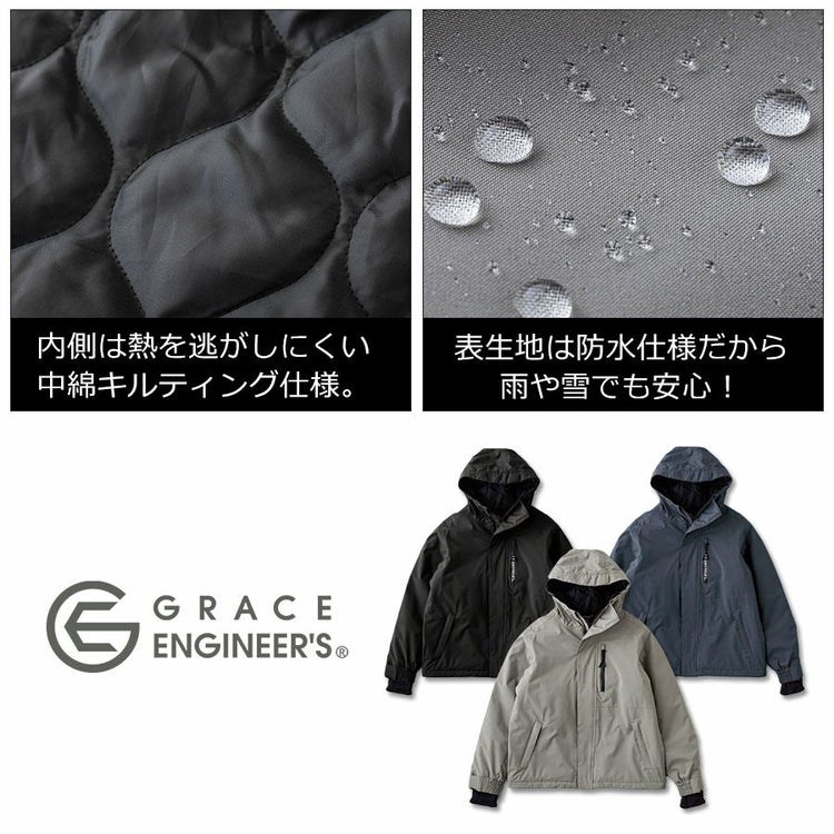 ジャケット じゃけっと アウター 羽織り haori 男性 メンズ 女性 ウィメンズ 防風 防水 防寒 中綿 中綿キルティング キルティング 内ポケットS M L LL 3L 仕事 作業着 作業 ワークウェア 現場 バイクウェア DIY 除雪 雪 雨 アウトドア 20代 30代 40代 50代 60代 GRACE ENGINEER'S グレイスエンジニアーズ