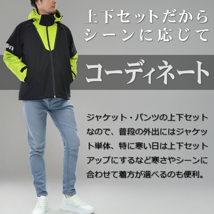 上下セットなので寒さやシーンに合わせて、ジャケット単体で着たり、上下セットアップで着たりと着方を変えられるのも便利です。