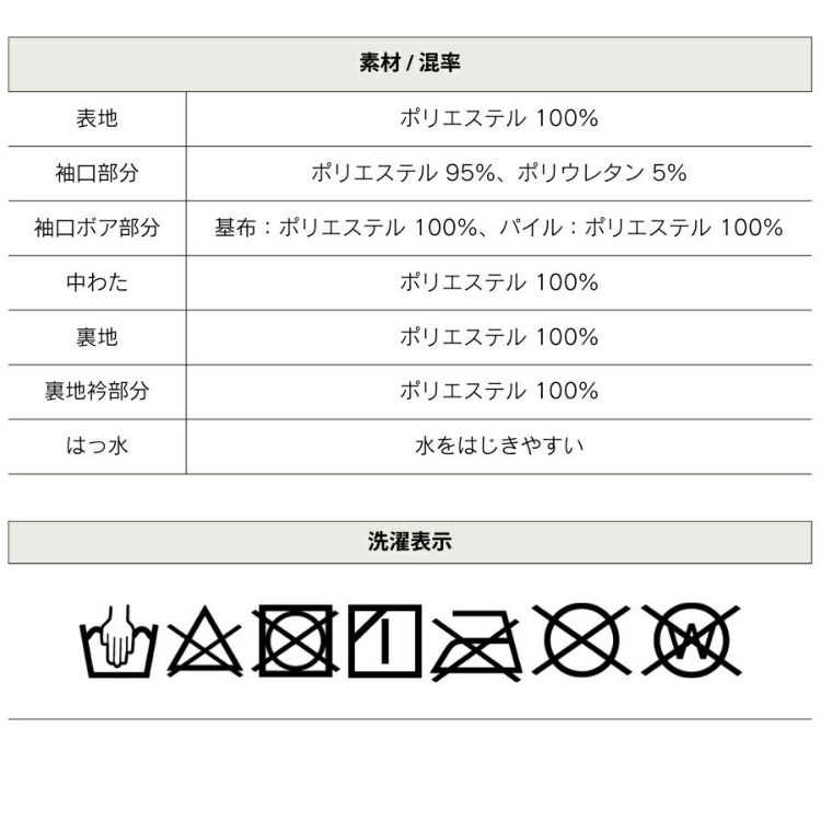 中綿には暖かい吸湿発熱素材を採用し、体から発生する湿気を吸収し、さらにその湿気を熱に変換することで保温性を実現しています。