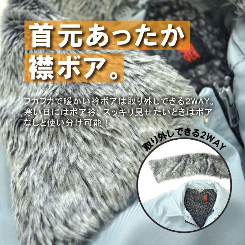 身頃には肌あたり暖かな大粒ボア&取り外し可能な襟ボアを装備!