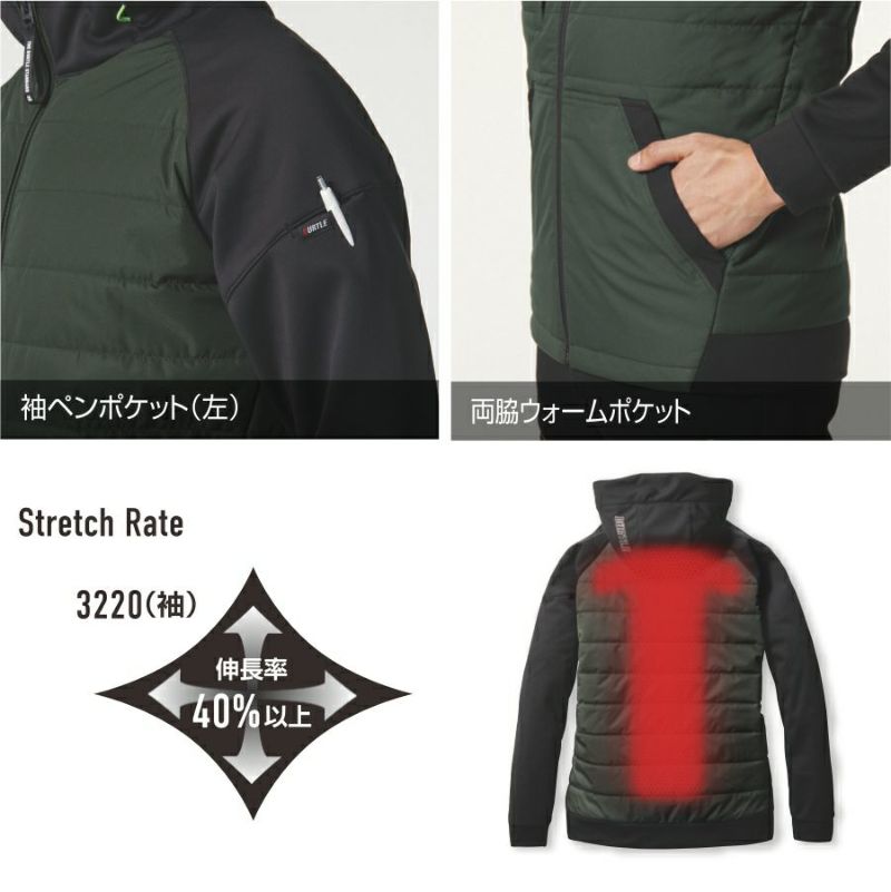 バートル 防風フーディジャケット 3220 メンズ 防風 防寒 ストレッチ 作業服 電熱ウェア サーモクラフト
