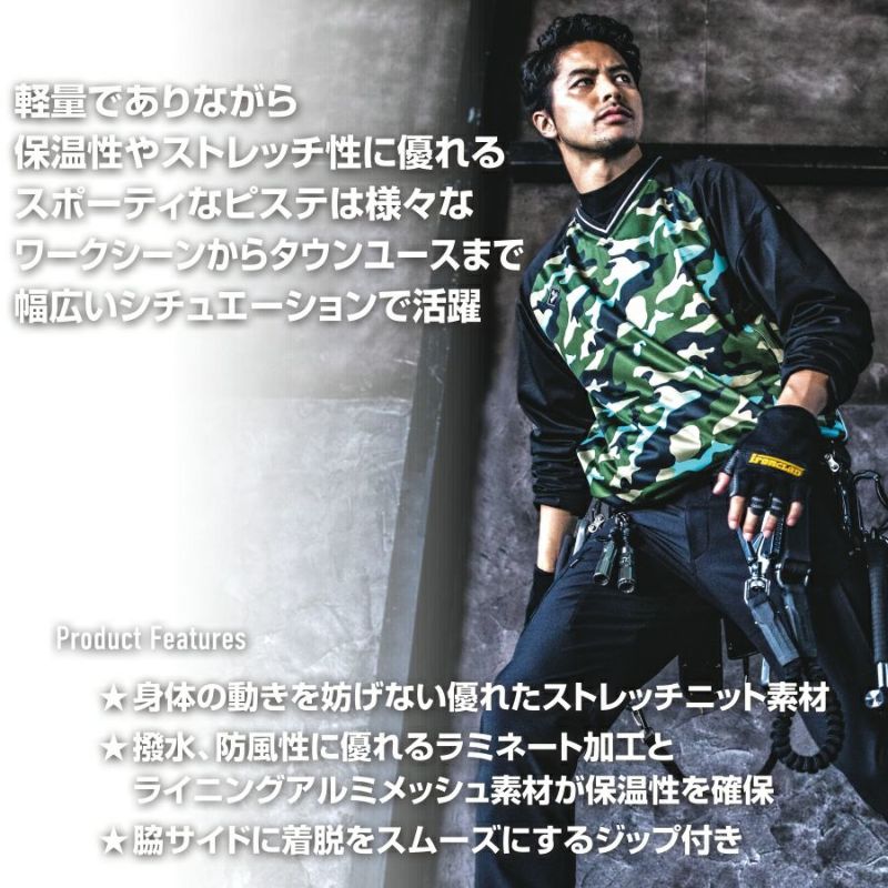 軽量でありながら保温性やストレッチ性に優れるスポーティなピステは様々なワークシーンからタウンユースまで幅広いシチュエーションで活躍