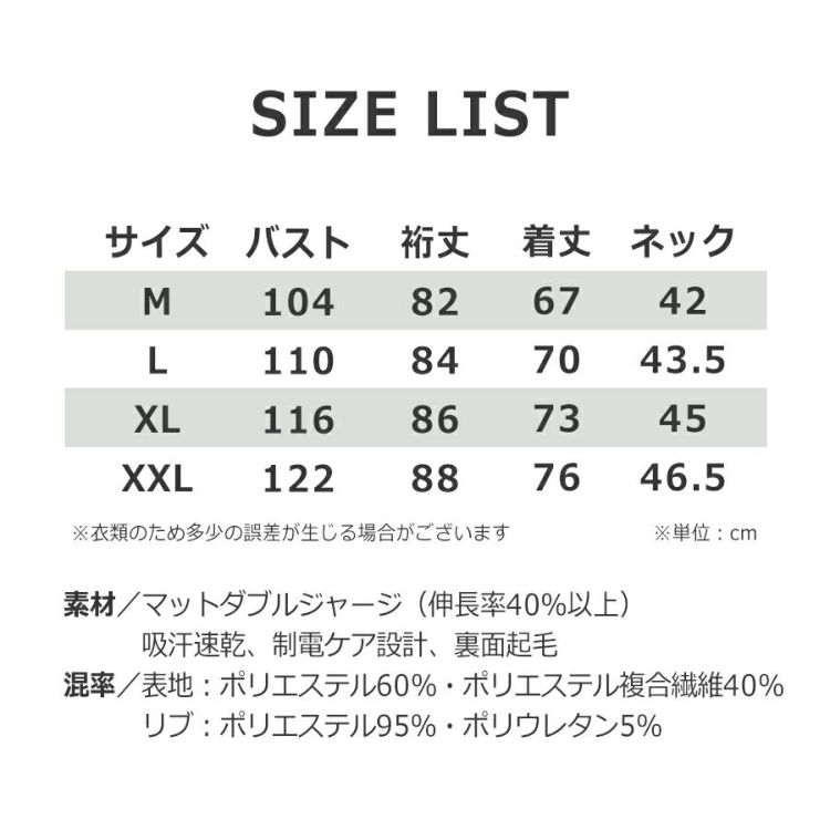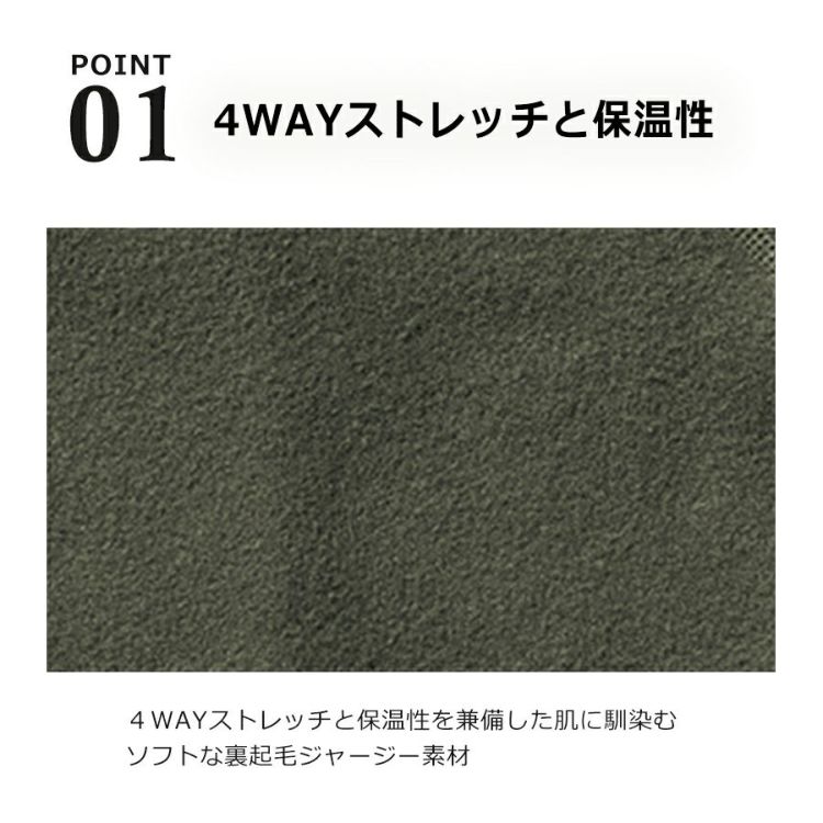 肌に馴染むソフトな裏起毛ジャージー素材が暖かい。