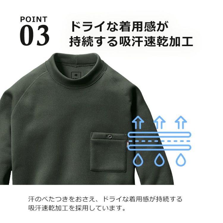 バートル モックネックホットロングTシャツ 4093 裏起毛 長袖 カットソー 作業着 作業服 制電 消臭 吸汗速乾 ストレッチ BURTLE