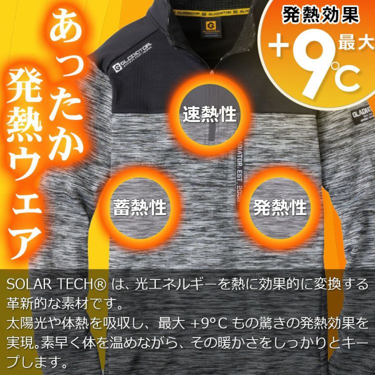 GLADIATOR グラディエーター 保温 フリース 速熱 蓄熱 発熱 シャツ 防寒 防寒着 あたたかい ハーフジップ 立ち襟 高襟 作業着 作業ウェア ストレッチ ポケット 消臭