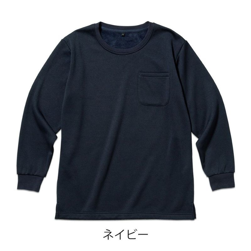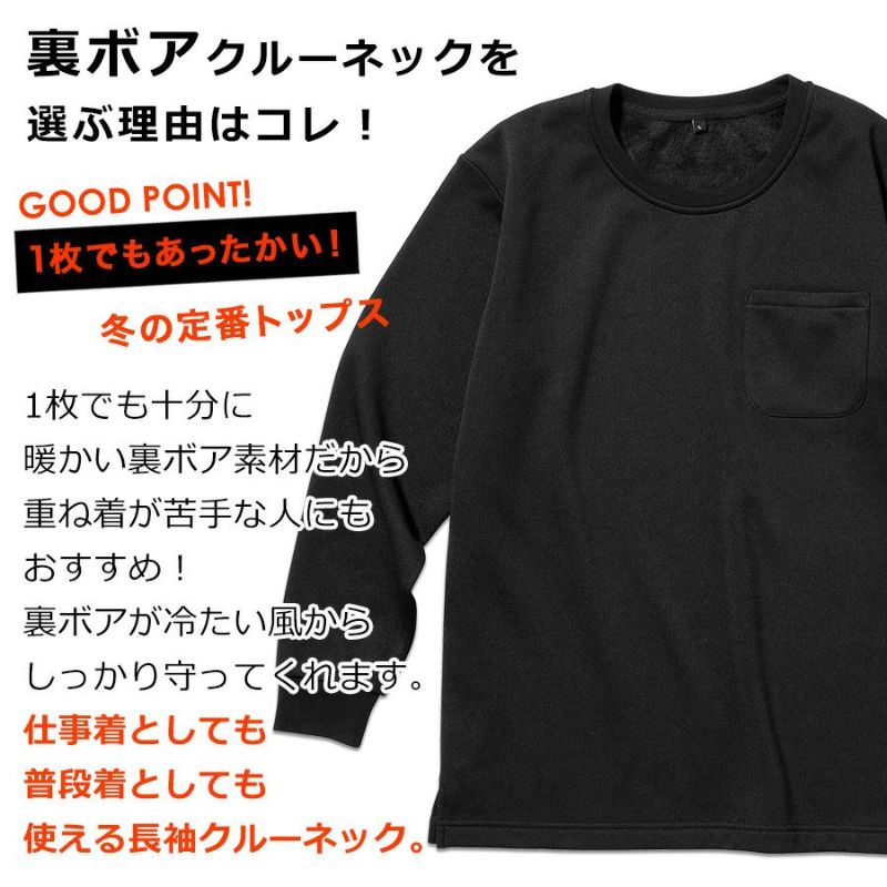 1枚で暖かい裏ボア長袖クルーネックは冬の重ね着が苦手な方にも安心です。