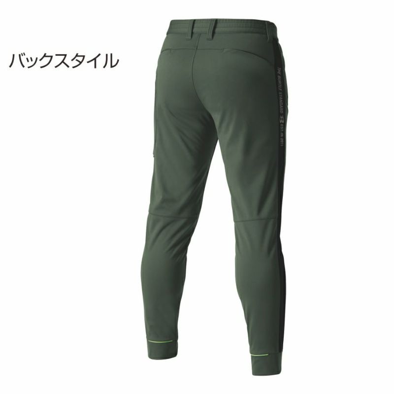 身体の動きに合わせて上下左右に自在に伸縮する裾ジョガー仕立ての4WAYストレッチパンツ
