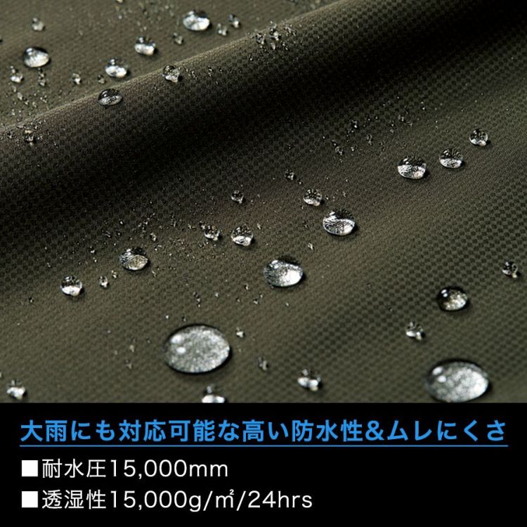 ■耐水圧15,000mm、透湿性15,000g/m2/24hrsを備えるハイスペックな機能素材。