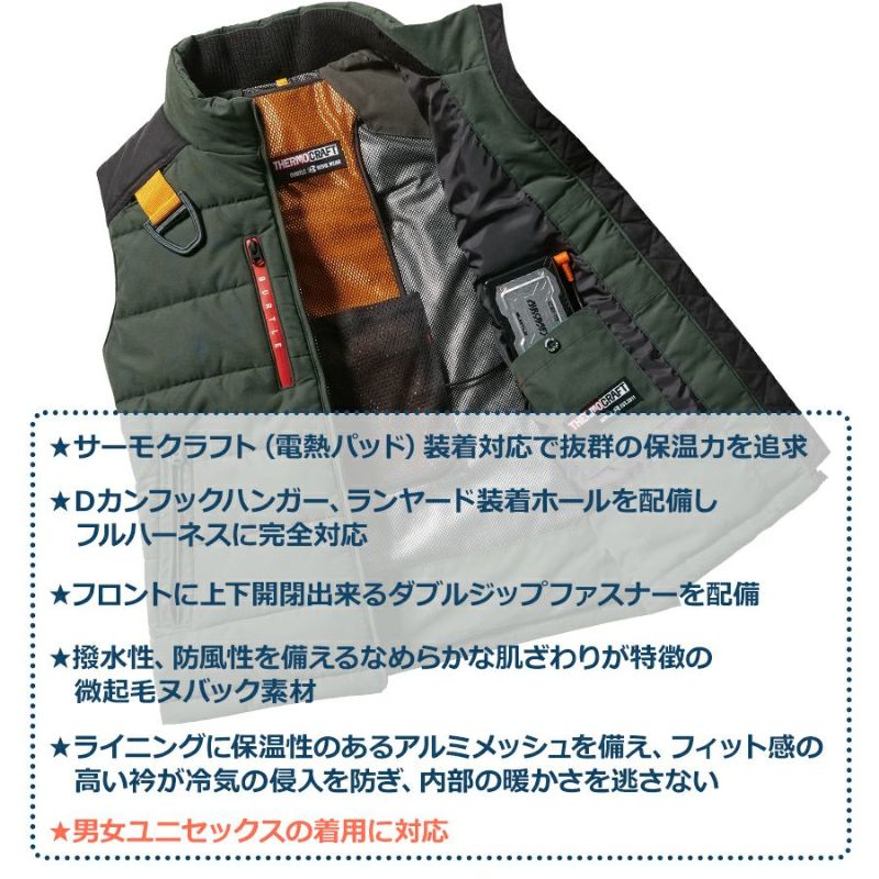 防寒ベスト バートル BURTLE 作業服 ユニセックス 男女兼用 溶接 ワークウエア 電熱パッド