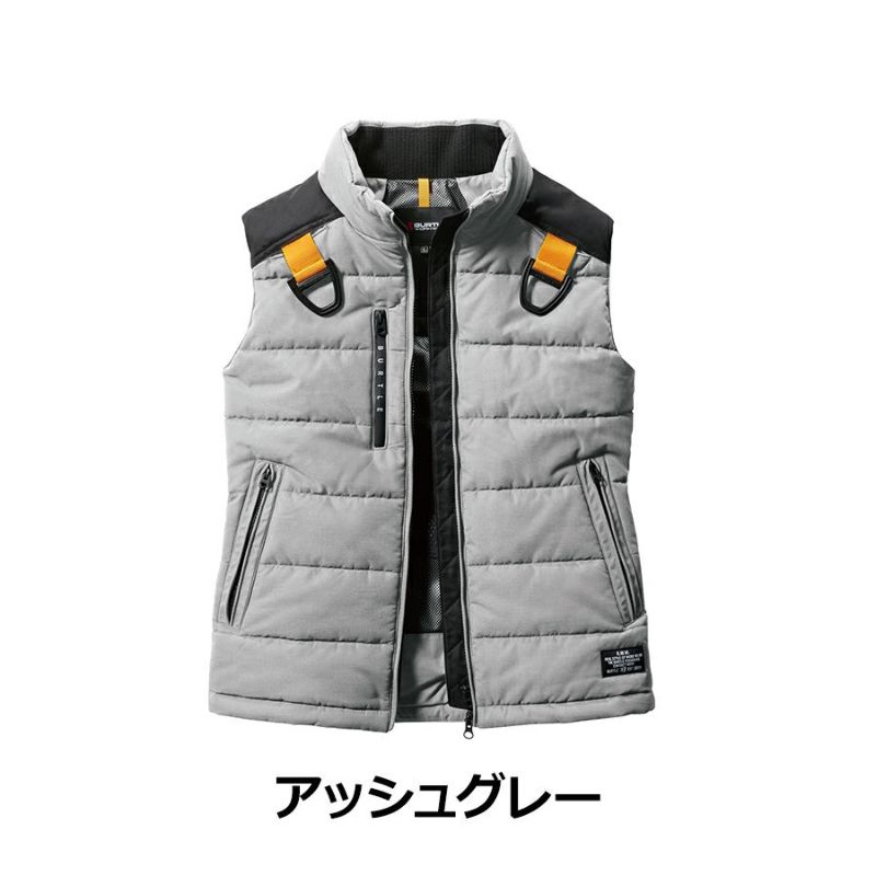 撥水性と耐久性を兼ね備えたヌバック素材のフルハーネス対応”バートル防寒ベスト”