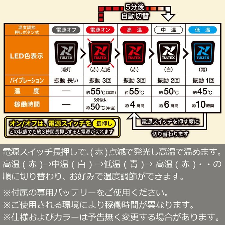 8813 タルテックス TULTEX ヒーター ベスト バイブレーション 作業着 ワークウェア バッテリー スポーツ観戦 アウトドア 工事現場 ジョギング ランニング ウォーキング 手洗い 抗菌 防臭
