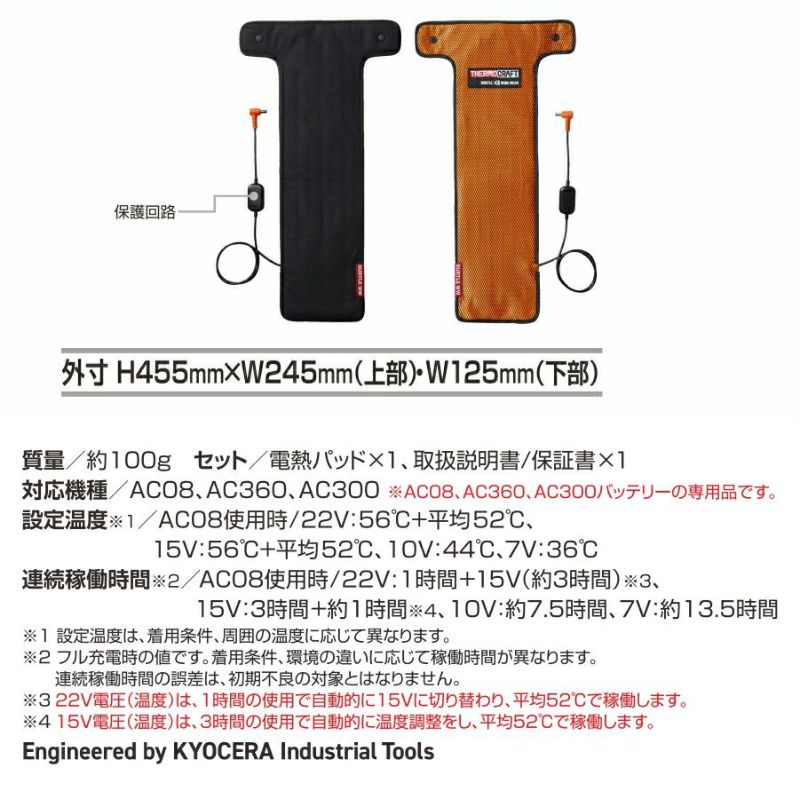 バートル サーモクラフト 電熱パッド TC500 単品 AC08・AC360・AC300専用 電熱ウェア 発熱 防寒 THERMO CRAFT 作業服 プロノ BURTLE
