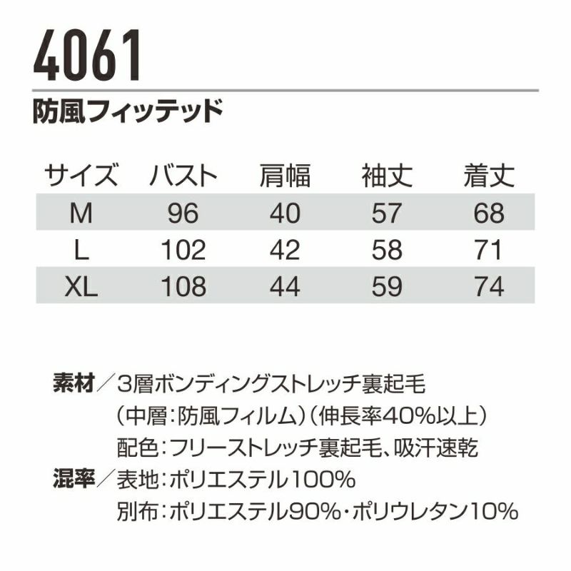 「BURTLE(バートル)」防風フィッテッド/4061 防寒 コンプレッション インナー 長袖 作業服 作業着 プロノ