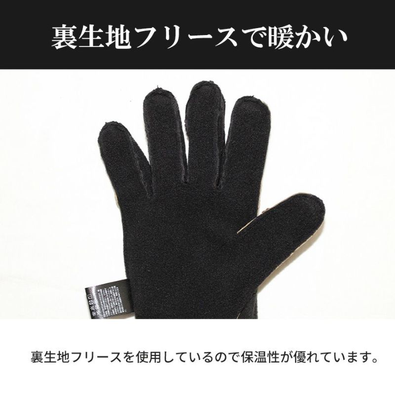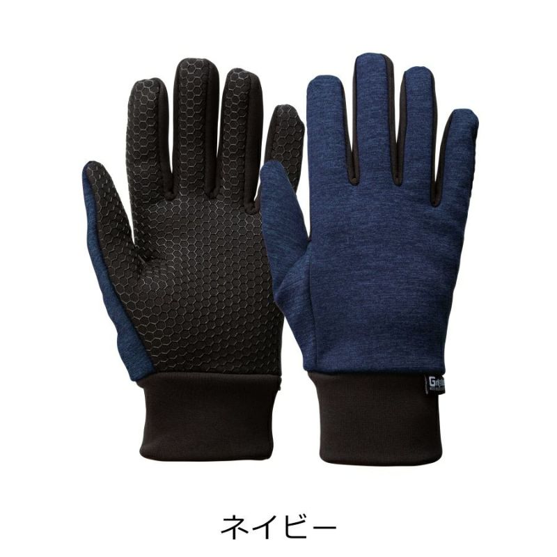 手首のリブと裏フリースで暖かく、手のひらにはグリップ付き。