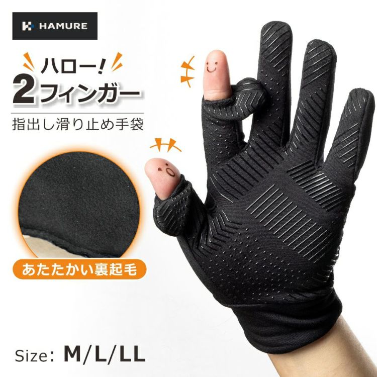 ハミューレ ハロー!2フィンガー HMU-2472 メンズ レディース 滑り止め手袋 グリップ 防寒 裏起毛 指出し 薄手 タッチパネル スマホ スマートフォン prono プロノ HAMURE