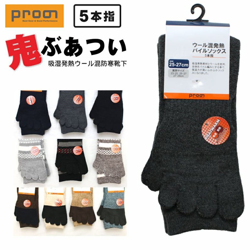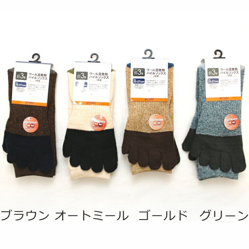 「プロノ」ウール混発熱パイル5本指ソックス/PR-2136 靴下 冬物 防寒 厚手 あったかい