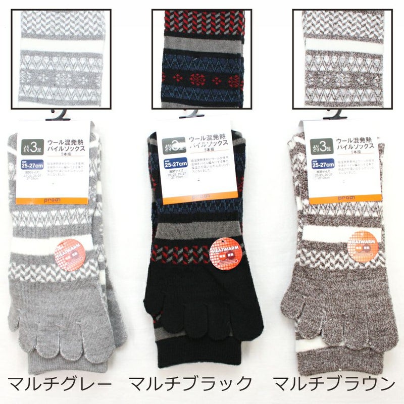 ウール混発熱パイル5本指ソックス