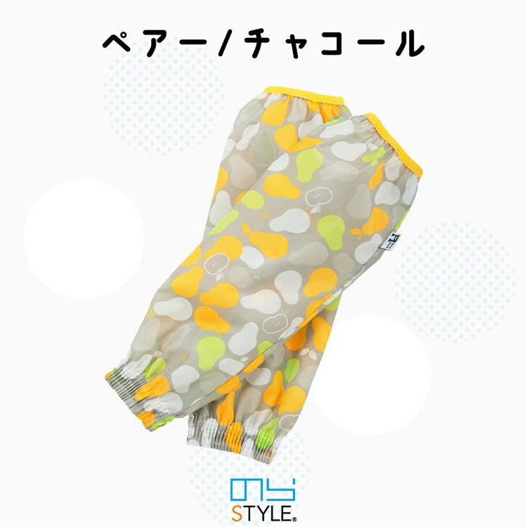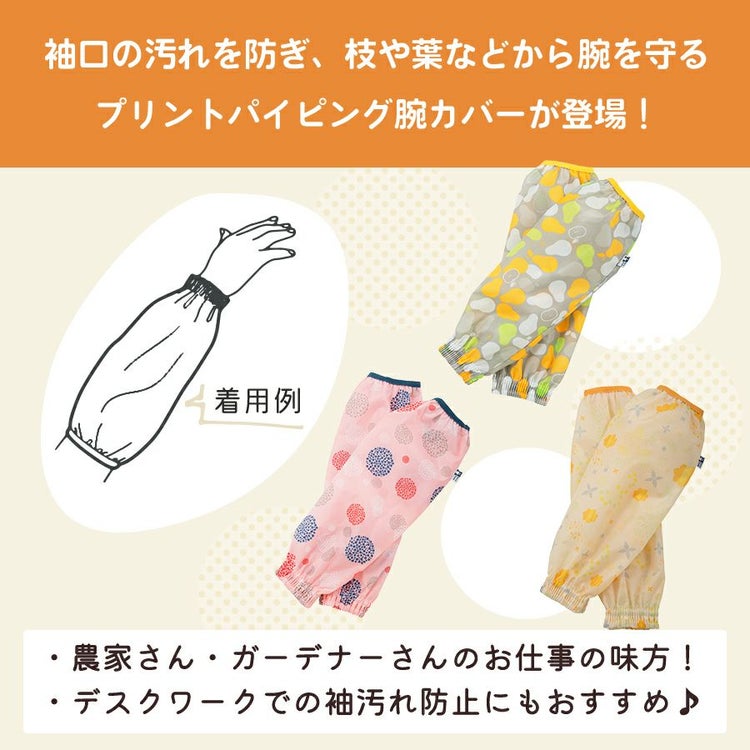 かわいいデザインとカラーの素材に、パイピング加工を施した腕カバーです。