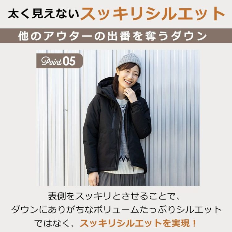 太く見えがちなダウンもスッキリとした見た目で着やせ効果◎