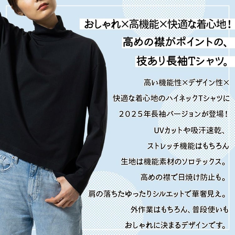 Tシャツ トップス 長袖 ロンT ハイネック モックネック レディース UVカット 夏 ストレッチ 形状記憶 吸汗速乾 農家さん 農業 ガーデニング 動きやすい