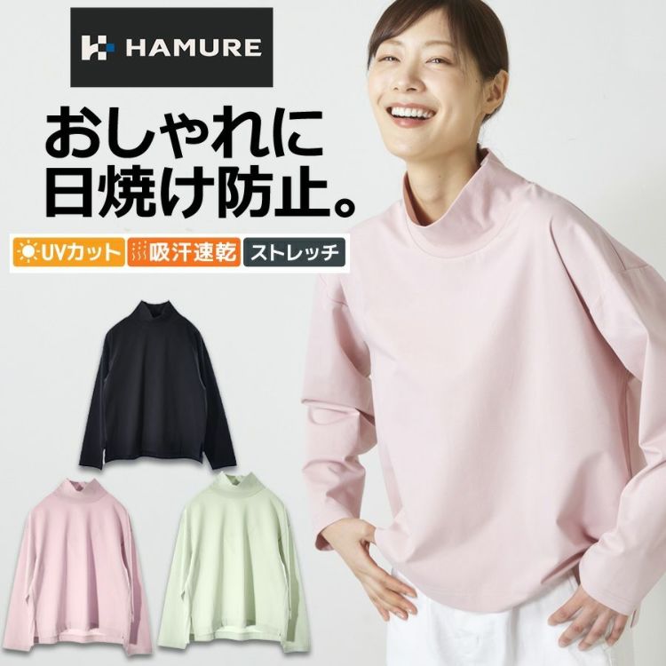 ハミューレ SOLOTEX(R)使用 レディース 長袖ハイネックTシャツ HMU-2519 トップス ロンT モックネック 吸汗速乾 UVカット ストレッチ 形状記憶 夏 農家 ガーデニング 動きやすい プロノ HAMURE