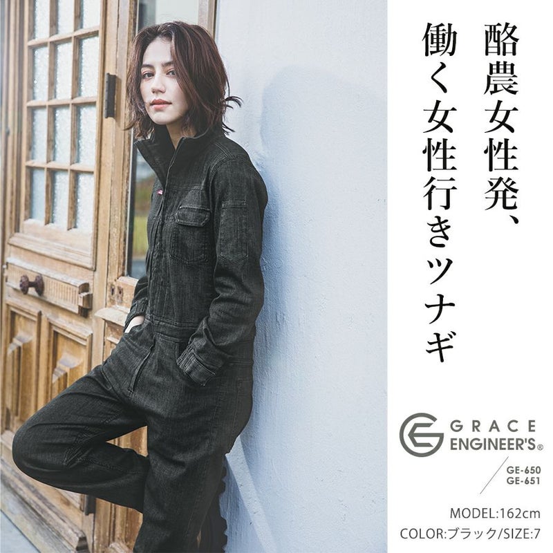 グレイスエンジニアーズ デアリーウーマンツナギ GE-650 GE-651 レディース 女性用 キッズ ジュニア 子供用 親子 デニム ヒップオープン おしゃれ 酪農 作業服【送料無料】