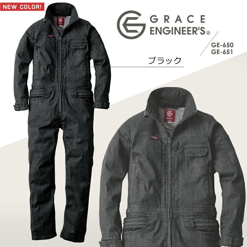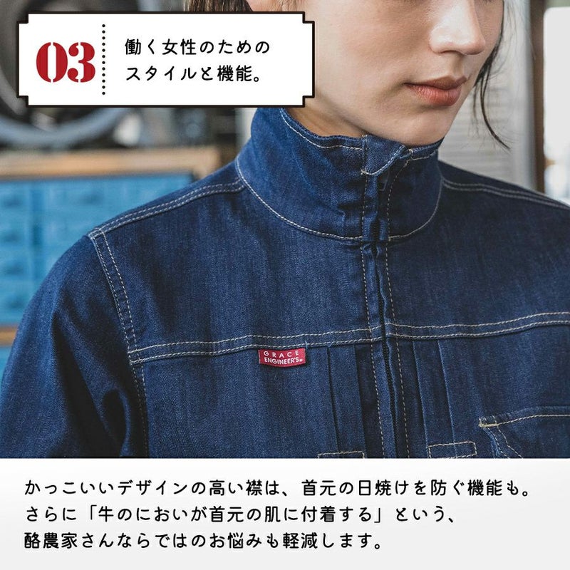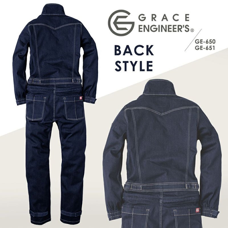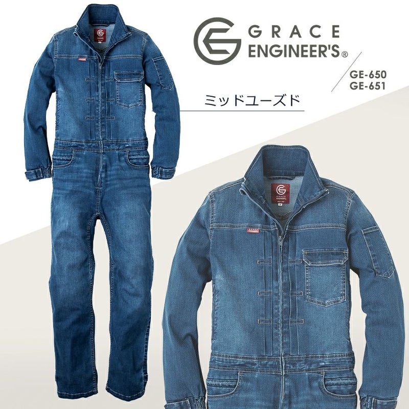 ゆったりサイズ グレイスエンジニアーズ デアリーウーマンツナギ GE-650 GE-651 レディース 女性用 デニム ヒップオープン おしゃれ 酪農 作業服