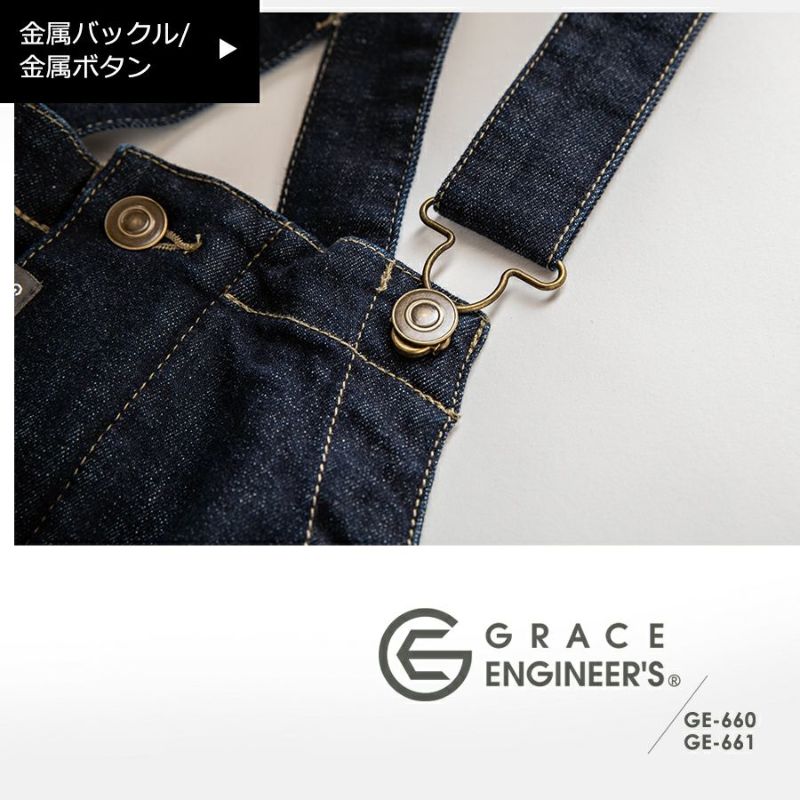 グレイスエンジニアーズ ボーダーレスデッキパンツ GE-660 GE-661 サロペット メンズ レディース ユニセックス ジュニア キッズ 子供 親子 ストレッチ オーバーオール デニム