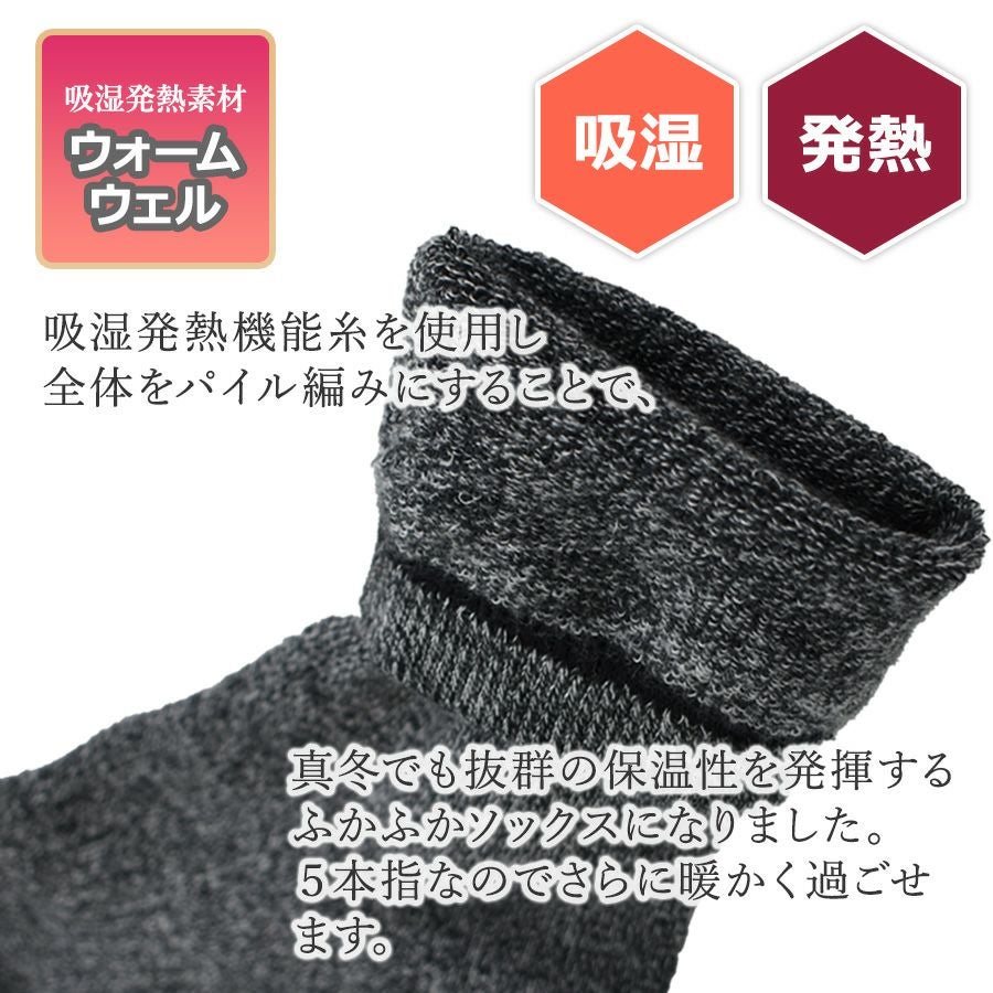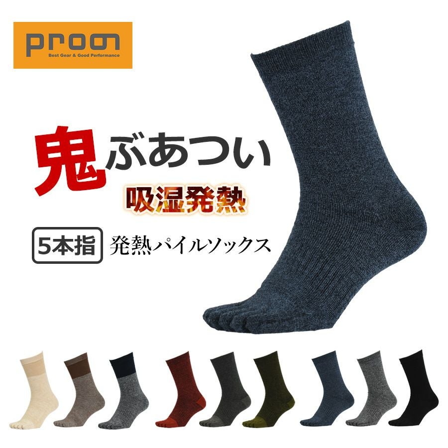 プロノ 発熱パイルソックス5本指 PR-2559 メンズ レディース 靴下 冬物 防寒 厚手 あったかい 北海道 Prono