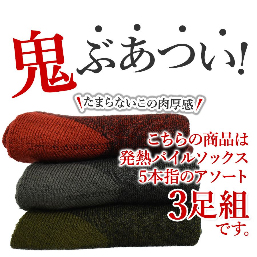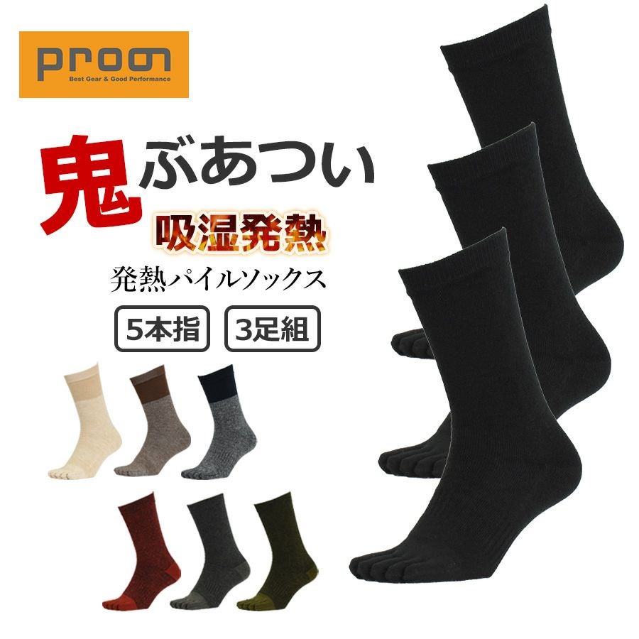 プロノ 発熱パイルソックス5本指3足組 PR-2559-3P メンズ レディース 靴下 冬物 防寒 厚手 あったかい 北海道 Prono