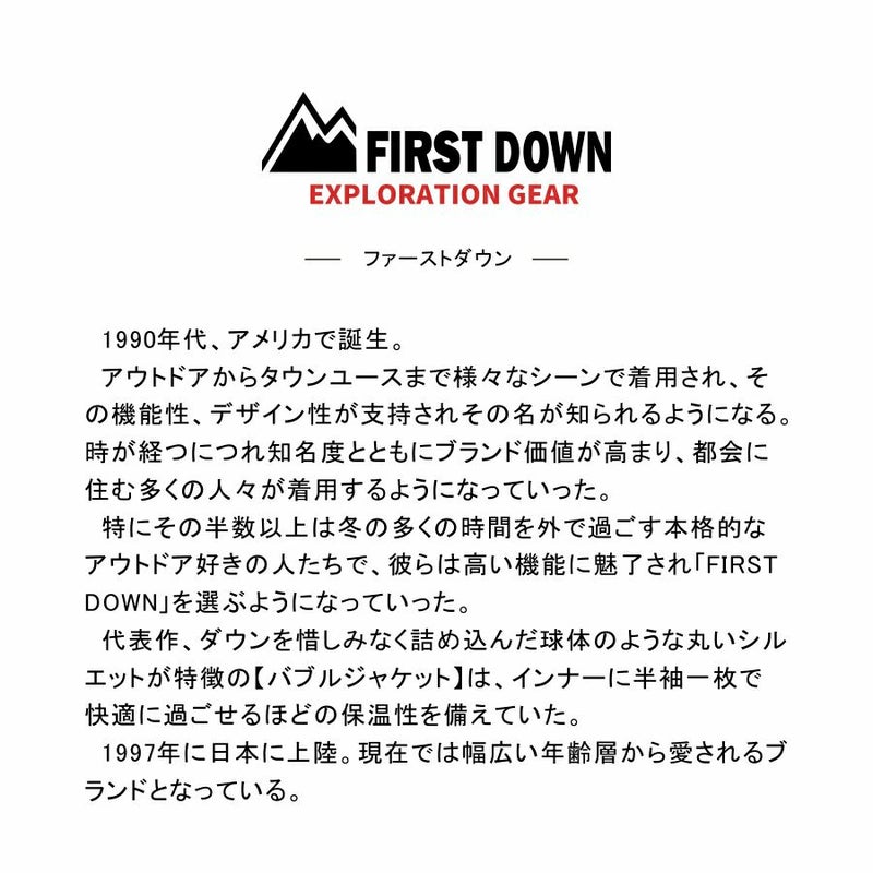 アメリカ発のファッションブランド「FIRST DOWN(ファーストダウン)」は、 代表作のダウンジャケットをはじめ、近年再び注目を集めている人気ブランド。
