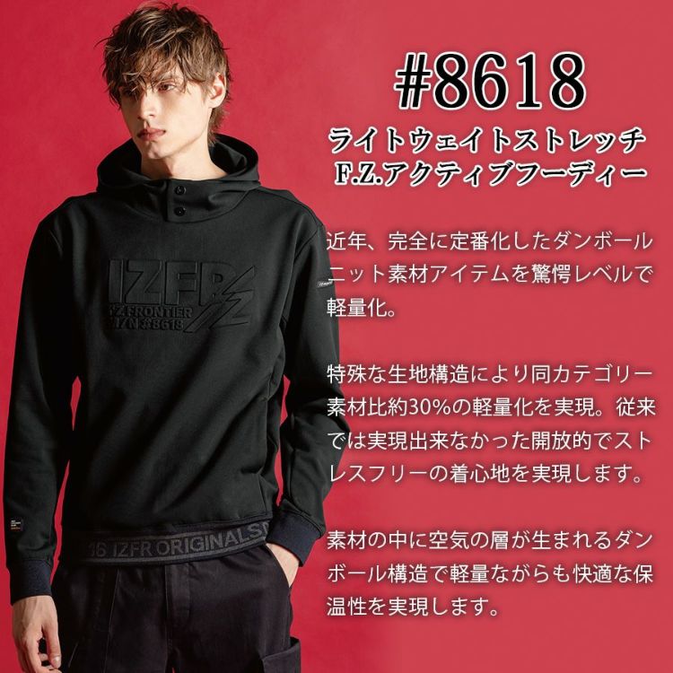 #8618 アイズフロンティア フーディー パーカー ストレッチ 軽量 保温 耐久 仕事 作業着 作業服 ワークウェア 運送 現場 DIY キャンプ 釣り シンプル I'Z FRONTIER