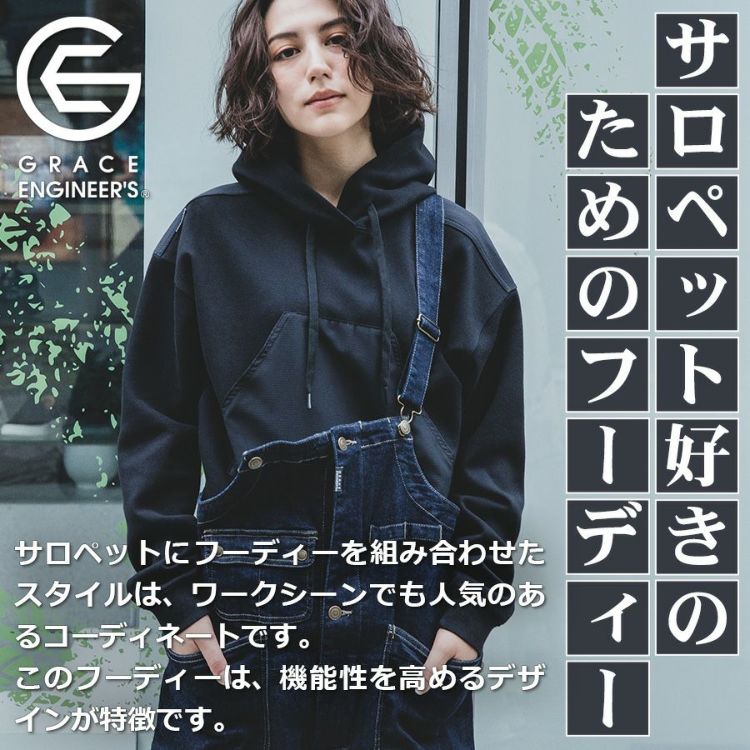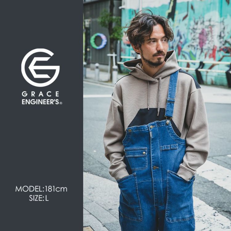 グレイスエンジニアーズ サロペ・デ・フーディー GE-3004 メンズ レディース パーカー プルオーバー サロペット オーバーオール おしゃれ GRACE ENGINEER'S