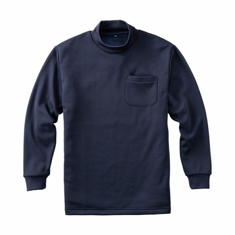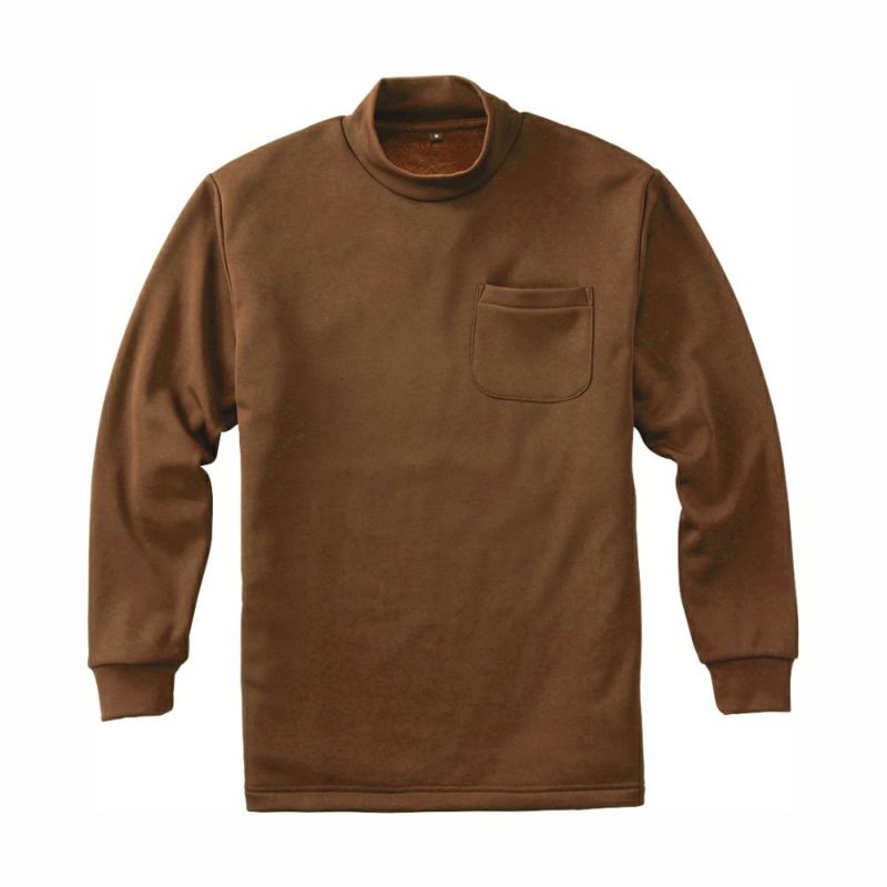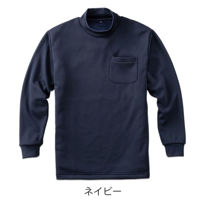 1枚で暖かい裏ボア長袖ハイネックシャツは冬の重ね着が苦手な方にも安心です。