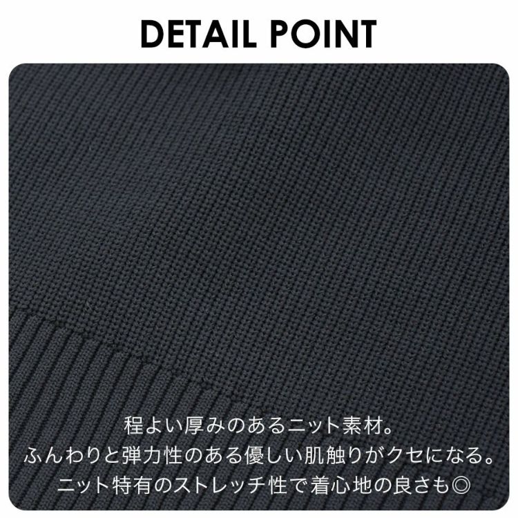 ・ほどよい厚みの二ット生地だから、インナーにシャツを重ねたり、 アウターを上に重ねてもごわつかずスッキリとしたシルエットラインが楽しめます。