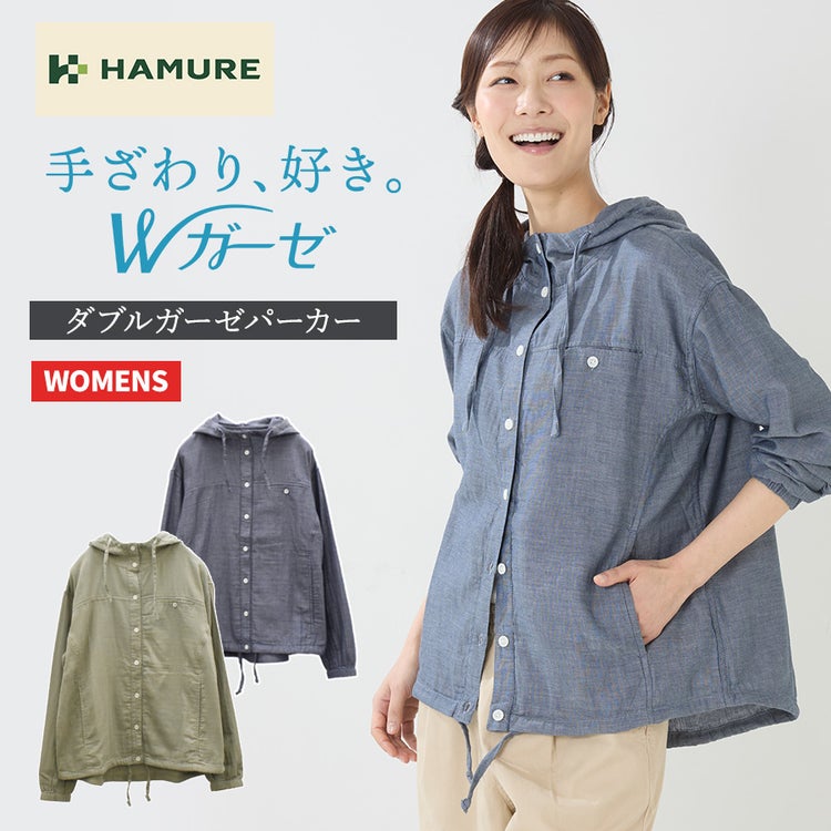 ハミューレ レディース ダブルガーゼシャツパーカー HMO-2501 コットン 綿100% Wガーゼ UVカット 通気性 涼しい 肌触りが良い 農家 ガーデニング HAMURE プロノ【26春てま】