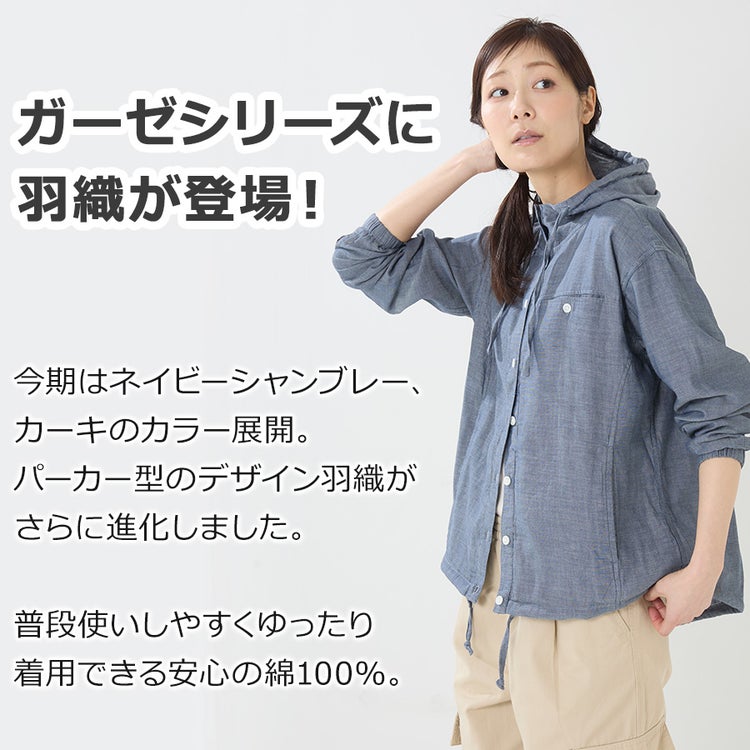 この春夏一押しのダブルガーゼパーカーに、ネイビーシャンブレーとカーキの新色が登場!