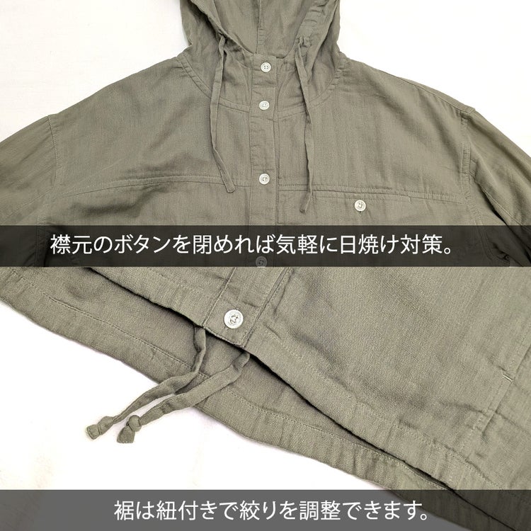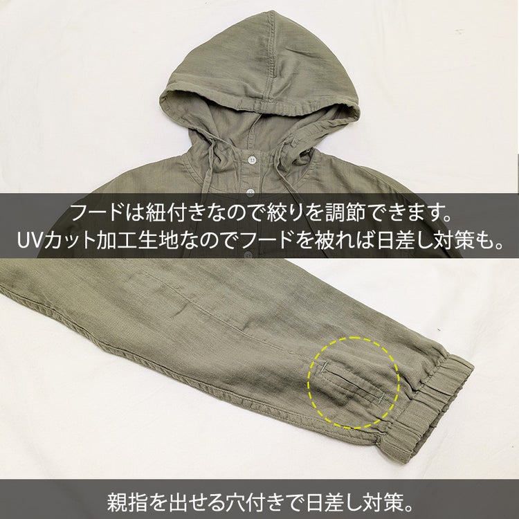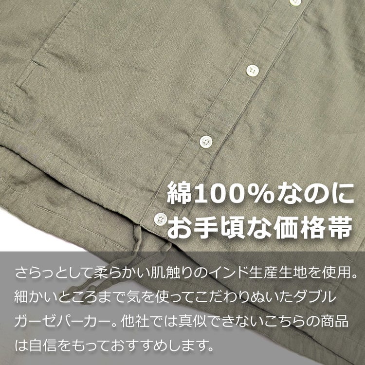 コットン 綿100% ガーゼ ダブルガーゼ Wガーゼ パーカー UVカット 羽織 農家 農業 ガーデニング 通気性 涼しい 肌触りが良い インド綿