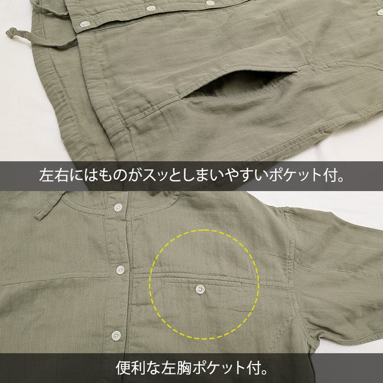 涼しいのに透けにくい二重ガーゼの生地で、UVカット加工も施されているので日差しの強い外出時にも重宝します。