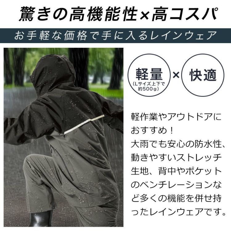 ■軽量(Lサイズ上下で約500g) ■耐水圧10,000mmで安心の防水性