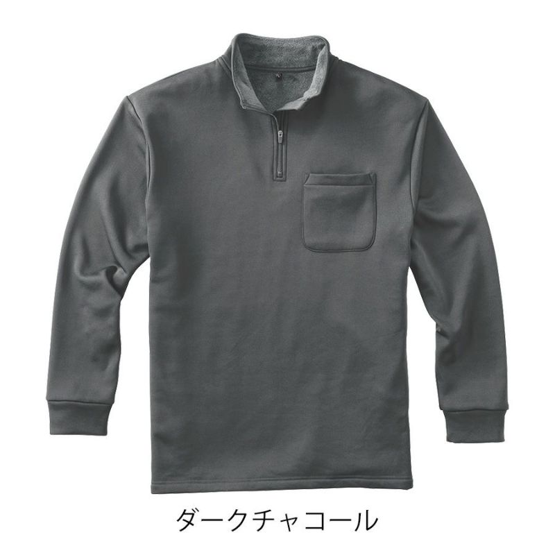 1枚で暖かい裏ボアハーフジップシャツは冬の重ね着が苦手な方にも安心です。