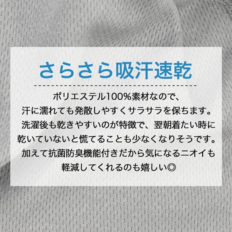 吸汗速乾生地を採用しているので、汗のニオイや雑菌の増殖も防いでくれる抗菌防臭機能と合わせて◎