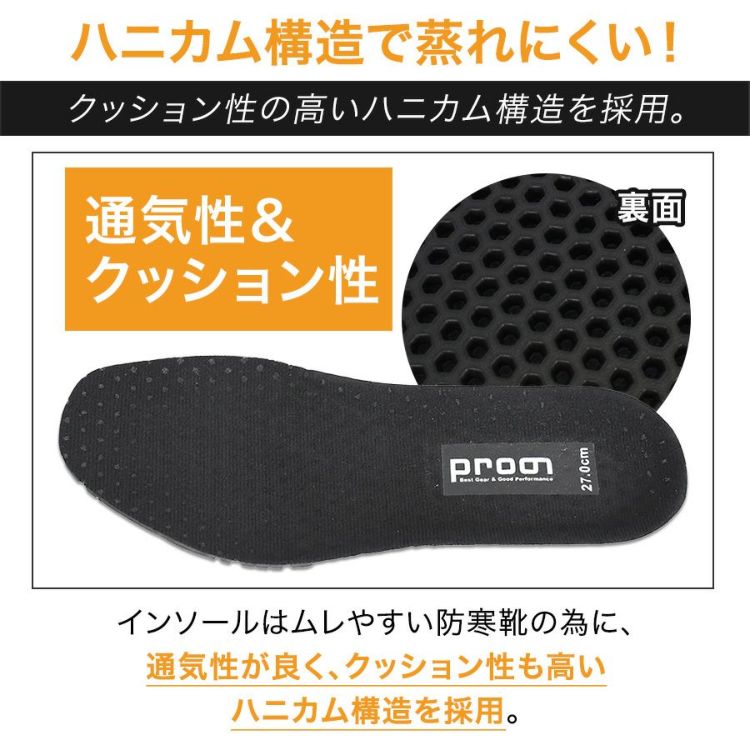 インソールはムレやすい防寒靴の為に、 通気性が良く、クッション性も高いハニカム構造を採用。