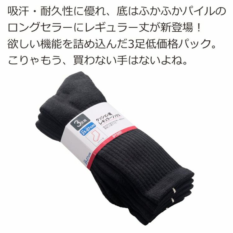 【3足組】プロノ クッション底レギュラーソックス PR-2564 靴下 ソックス レギュラー丈 先丸 パイル編み 仕事 作業 スポーツ 運動 Prono