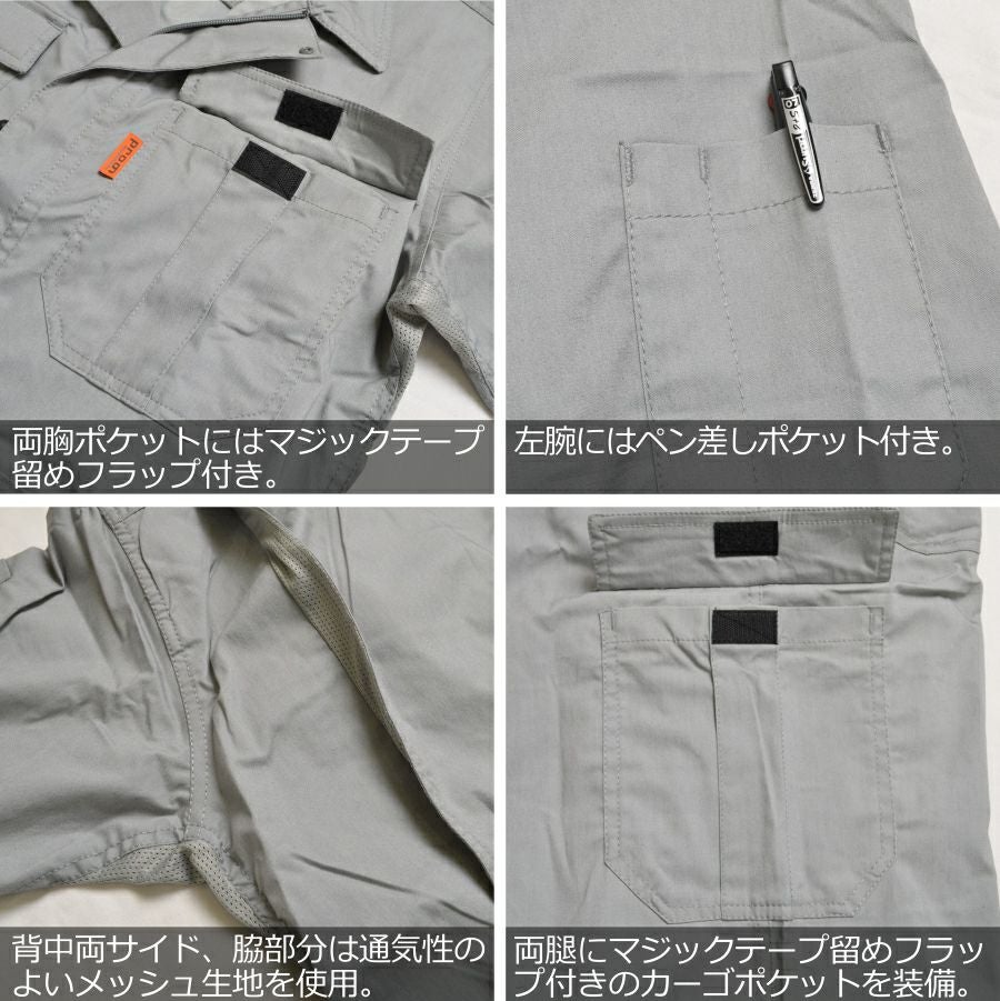 他の画像を見る プロノ 脇&背中メッシュ 長袖 通気ストレッチカーゴツナギ PR-2001 夏用 薄生地 オーバーオール メンズ つなぎ おしゃれ 動きやすい 作業服 ¥ 4,389 税込 在庫切れ 涼しく動きやすい!夏生地&通気メッシュ付きストレッチツナギがついに登場! カートに入れる お気に入りに登録する