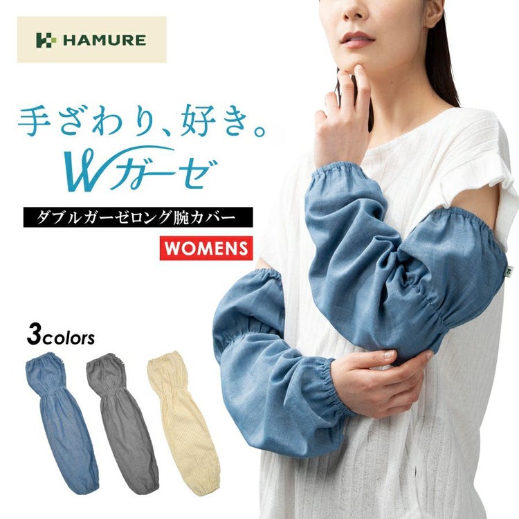 ハミューレ ダブルガーゼロング腕カバー HMO-2004 レディース アームカバー UVカット 綿100% Wガーゼ 日焼け対策 通気性 農家 農作業 ガーデニング プロノ HAMURE